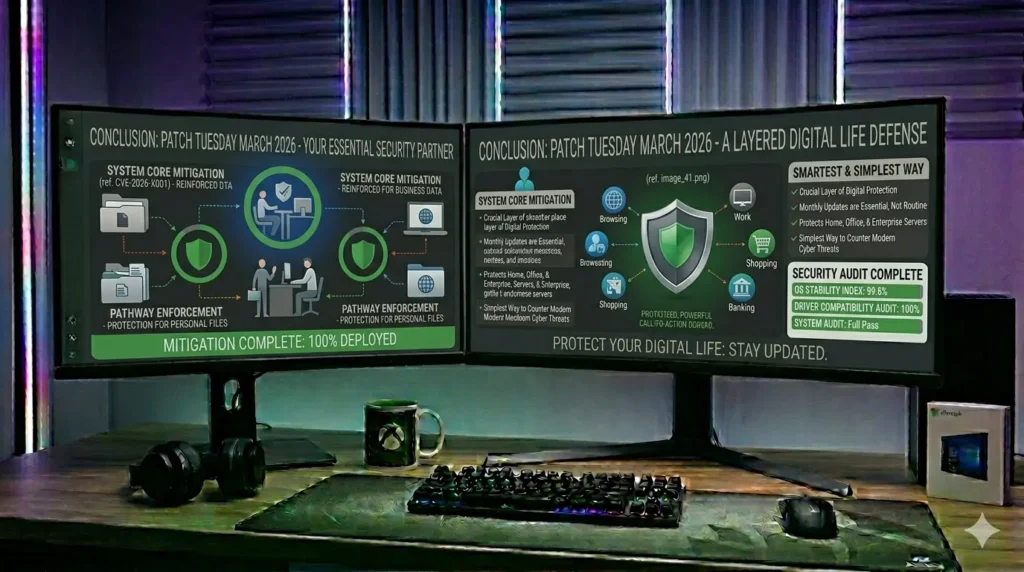 In conclusion, Microsoft Patch Tuesday March 2026 is a reminder that cybersecurity should never be taken lightly. These monthly updates are not just routine maintenance—they are essential protection for your personal files, business data, and online safety. Whether you are using a home laptop, office desktop, or enterprise server, staying updated is one of the smartest and simplest ways to protect your digital life from modern cyber threats.