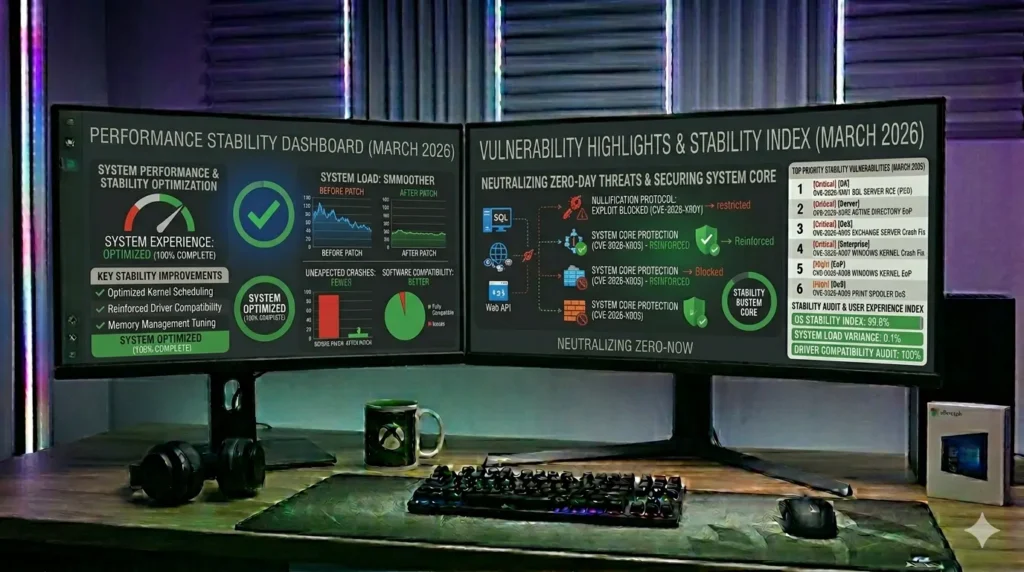 The March 2026 Patch Tuesday update focused heavily on security improvements, bug fixes, and protection against active vulnerabilities that were already being targeted by attackers. Microsoft addressed dozens of security flaws, including some high-risk zero-day vulnerabilities. These types of vulnerabilities are especially dangerous because hackers may already be exploiting them before a fix becomes available.